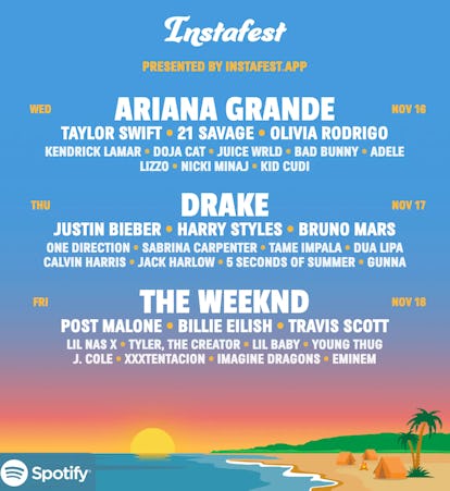 . 1 day agoSpotify Instafest is the new trend taking over social media to engage the fans. Spotify Instafest is a would-be festival lineup poster of all of the most-streamed. 4 hours agoMeet Instafest the third-party app that allows Spotify users to turn their music.